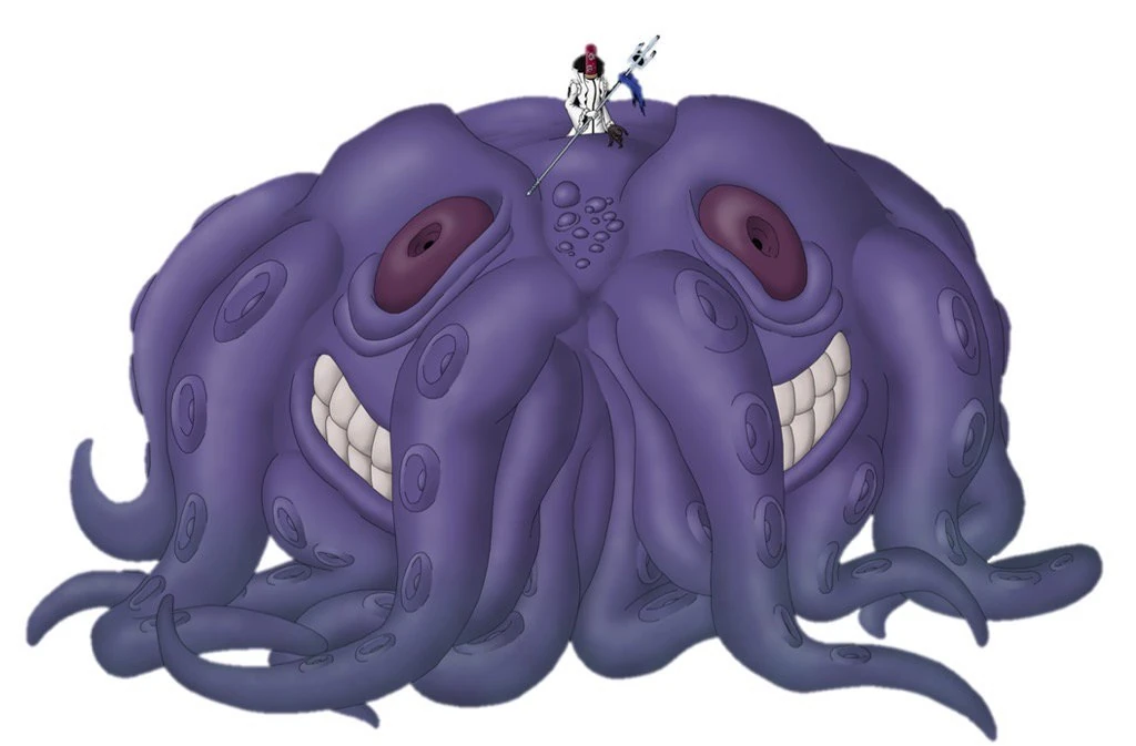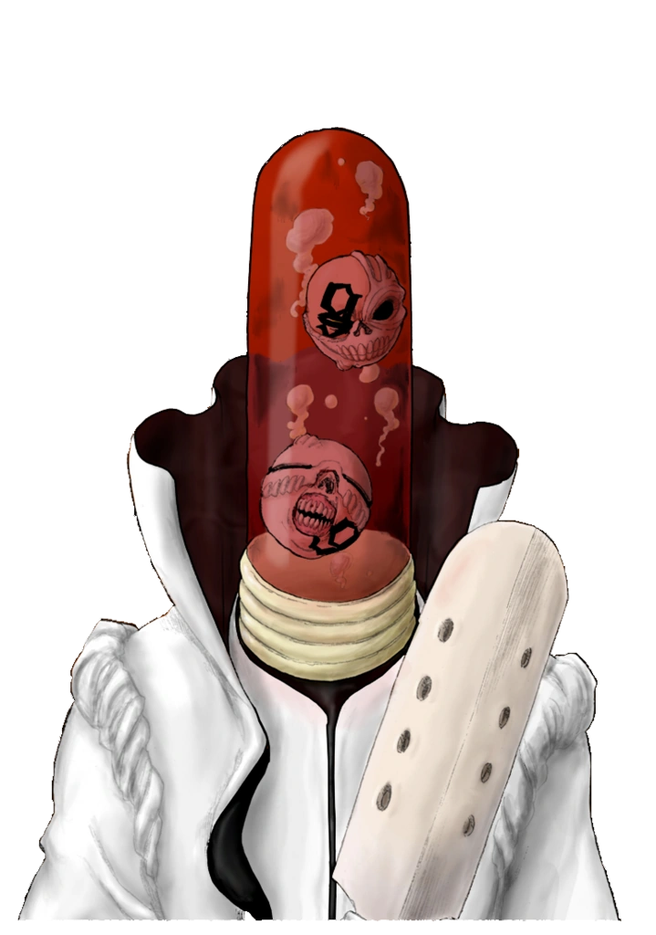 Jego strój, podobnie jak większość Espady, jest spersonalizowany: nosi strój, który zakrywa całe jego ciało, w przeciwieństwie do zwykłej kurtki i hakamy. Nosi także plisowany płaszcz szlachecki, który działa jak jego zastępcza kurtka i pojedynczą białą rękawicę dżentelmena. Resztki jego maski Pustego znajdują się na obu jego głowach, górna głowa ma trzy czwarte siebie zakryte maską, a dolna głowa ma tylko połowę siebie zakrytą. Jego dziura Pustego znajduje się w lewym obszarze uda.