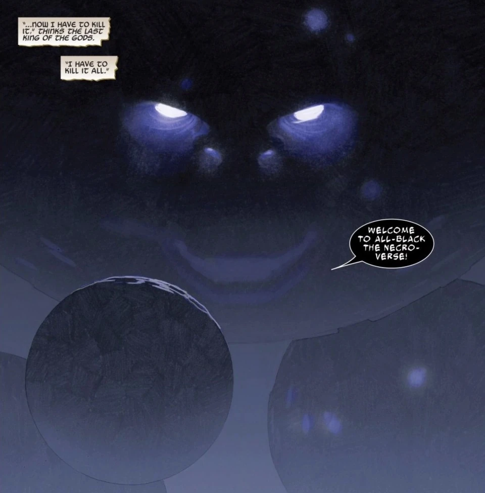 Mając w swoim posiadaniu All-Black, użył go do zabicia Ego, a następnie użył go do walki z Thorem ze swojej Ziemi i próby zabicia swoich wnuczek. Użył również symbionta do zgaszenia słońca, a także do odtworzenia Czarnych Berserków we własnej armii zwanej Nekro-Krukami, w której wysłał ich, by znaleźli i zabili Boginie Piorunów.