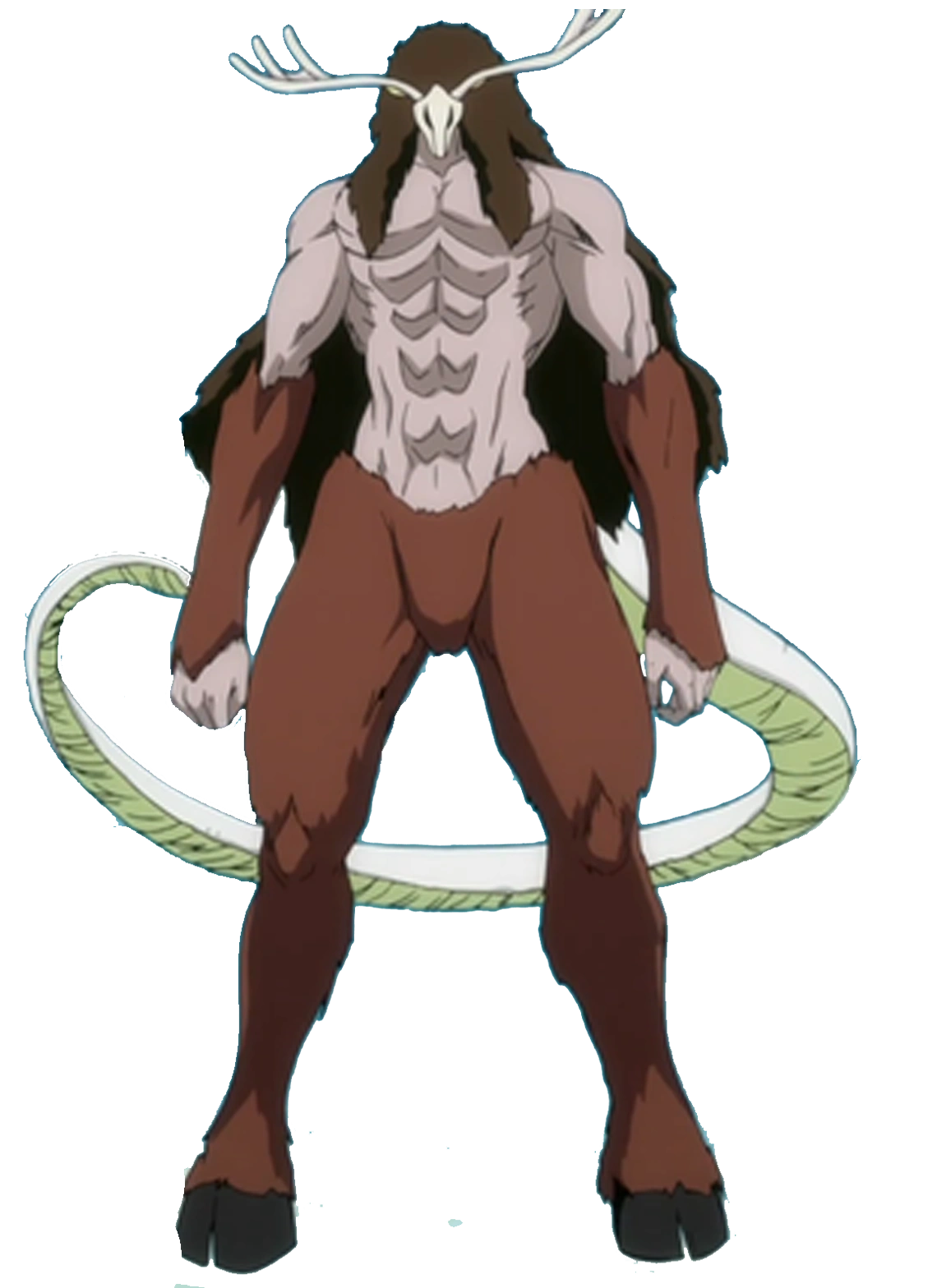 Pod jego długą grzywą kryją się duże usta, wystarczająco duże, by zmieścił się w nich człowiek. Ma parę dużych oczu umieszczonych pod rogami czaszki jelenia.