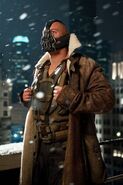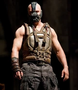 - Filmowy kostium Bane'a znacznie różnił się od jego odpowiednika z komiksu, który nosił maskę meksykańskiego zapaśnika. W filmie maska Bane'a nie zakrywała jego całej twarzy, a głównie usta, szczękę i tył głowy, z oczyma i brwiami wyraźnie odsłoniętymi. Bane nosił również pancerną kamizelkę klasy wojskowej z dopasowaną parą czarnych spodni bojowych z nakolannikami i butami, a od czasu do czasu nosił też brązowy trencz.