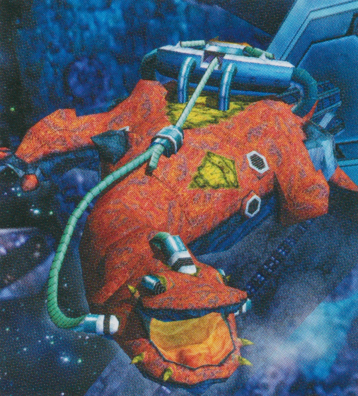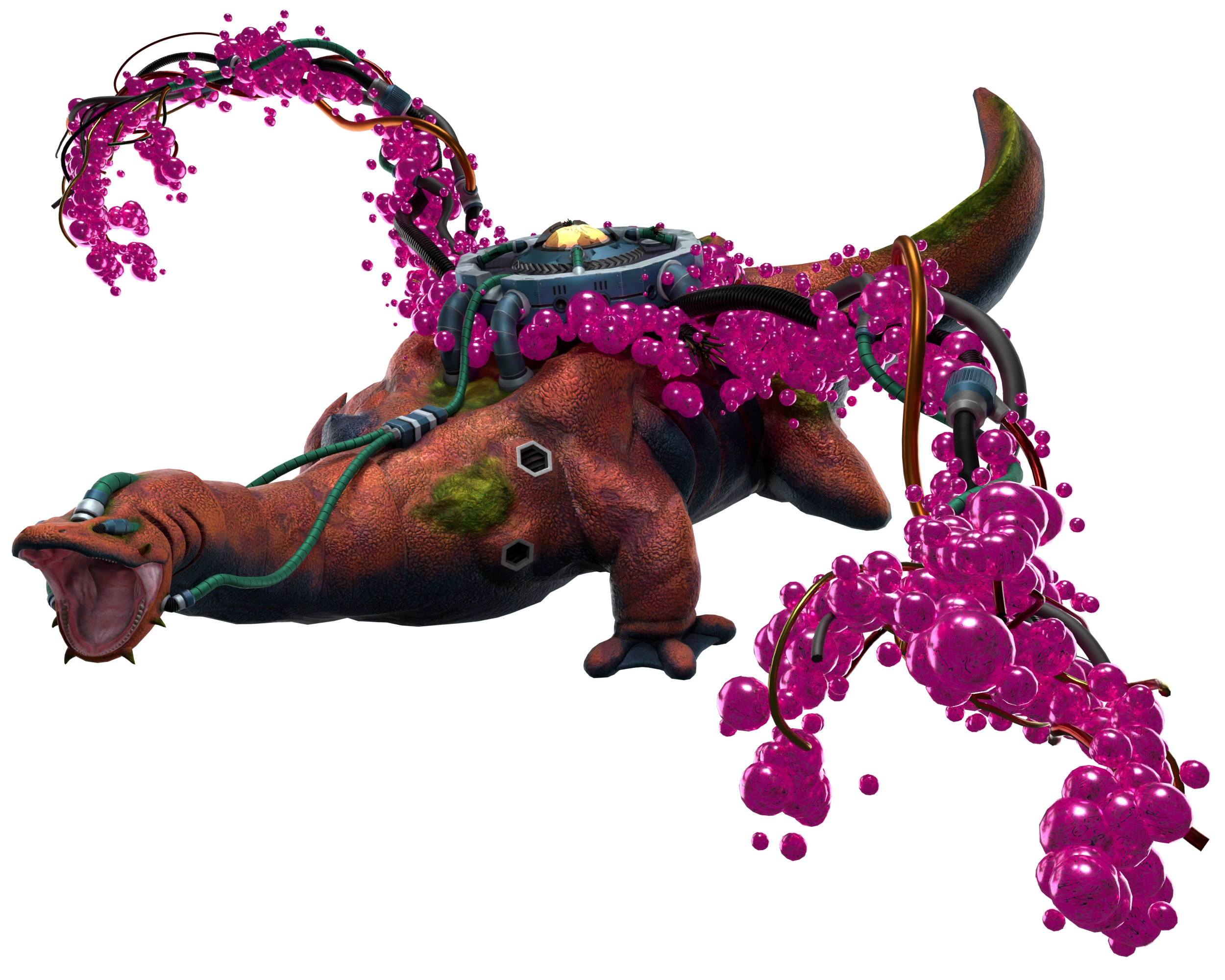 Biolizard ma na swoim ciele kilka robotycznych implantów. Jego oczy przypominają wieżyczki strzelnicze, a na plecach ma dużą maszynerię w kształcie dysku z czerwoną kulą pośrodku, która jest jego systemem podtrzymywania życia. Ma też kilka kabli na plecach oraz zestaw zielonych kabli na stawach żuchwowych, łączących się z systemem podtrzymywania życia, a także zielony kabel na czole. Wydaje się również, że ma otwory wentylacyjne w pobliżu nasady szyi.