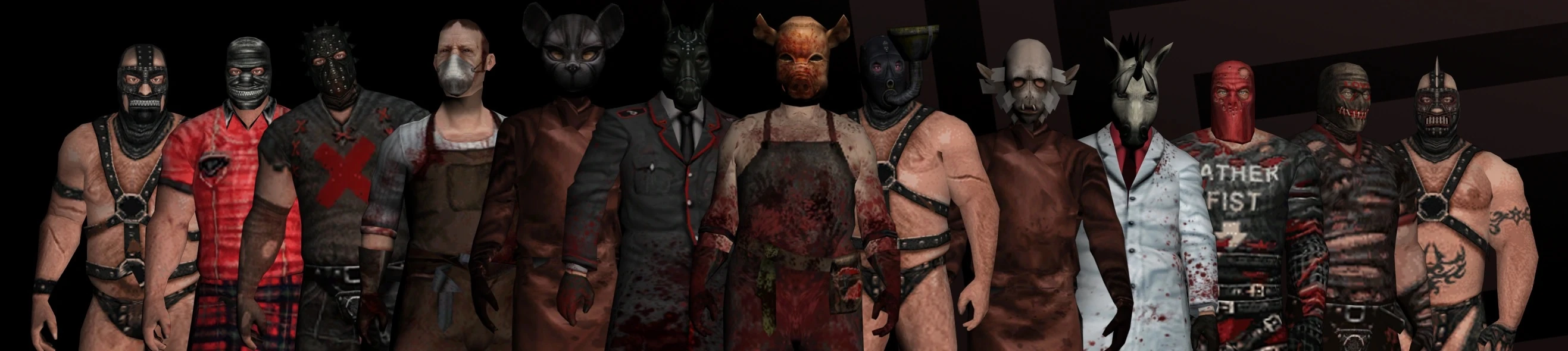 Dewianci w klubie BDSM są ubrani w typowy ubiór do sadomasochistycznych zabaw; noszą lateksowe maski i kostiumy, niektórzy mają zamontowane w maskach rury do picia moczu, inni noszą kobiece sukienki, niektórzy są prawie całkiem goli poza lateksowymi pasami na ciele; dwóch Dewiantów w klubie nosi normalne ubrania. Dewianci w piwnicy klubu noszą fartuchy przypominające ubiór rzeźnika, oraz maski, w tym maski koni, jednorożców, kotów czy świń.