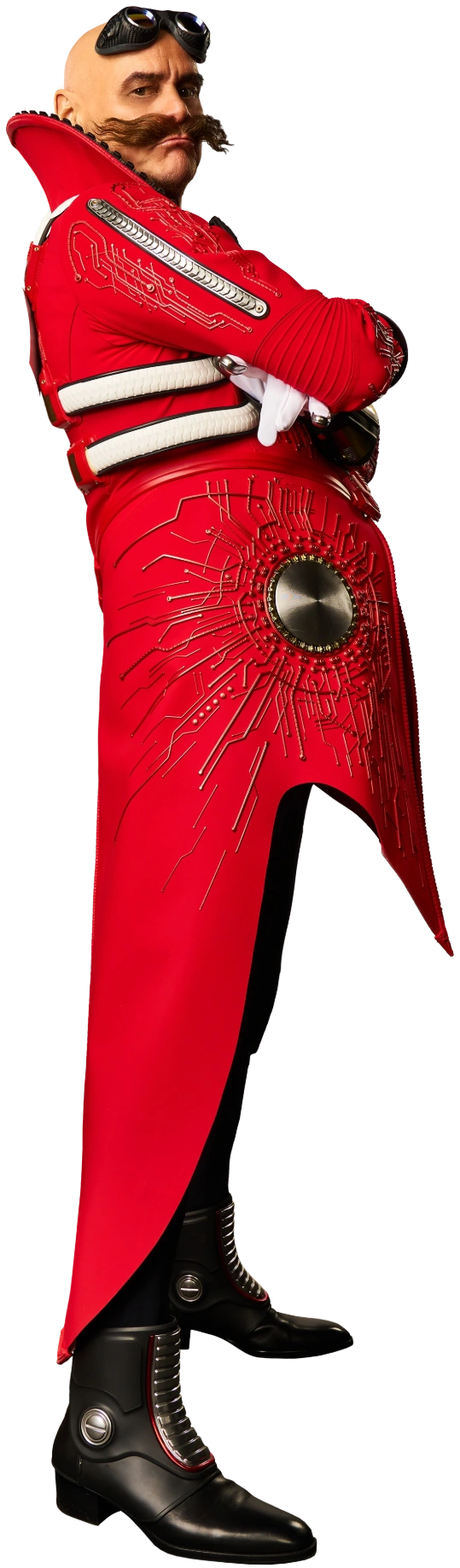 - Każdy z filmów pokazuje, że Dr. Robotnik staje się coraz bardziej podobny do swojego odpowiednika z gier, Dr. Eggmana. W pierwszym filmie pierwotnie nosił czarny garnitur, miał włosy i małe czarne wąsy. Podczas kulminacyjnego momentu pierwszego filmu nosił czerwony kombinezon lotniczy i gogle, a nadal miał włosy i nieduże wąsy. Pod koniec pierwszego filmu i w pierwszym akcie drugiego Dr. Robotnik miał łysą głowę, długie brązowe wąsy i gogle. Jego kombinezon lotniczy również był podarty. Przez resztę drugiego filmu nosił inny strój, który był podobny do jego odpowiednika z gier. Kiedy w trzecim filmie połączył siły z Soniciem, Tailsem i Knucklesem, miał grubsze ciało i nosił lekko zaktualizowaną wersję swojego stroju z drugiego filmu. A kiedy połączył siły ze swoim dziadkiem i Shadowem, nosił nowy strój, który był niemal identyczny jak u jego wersji z gier.