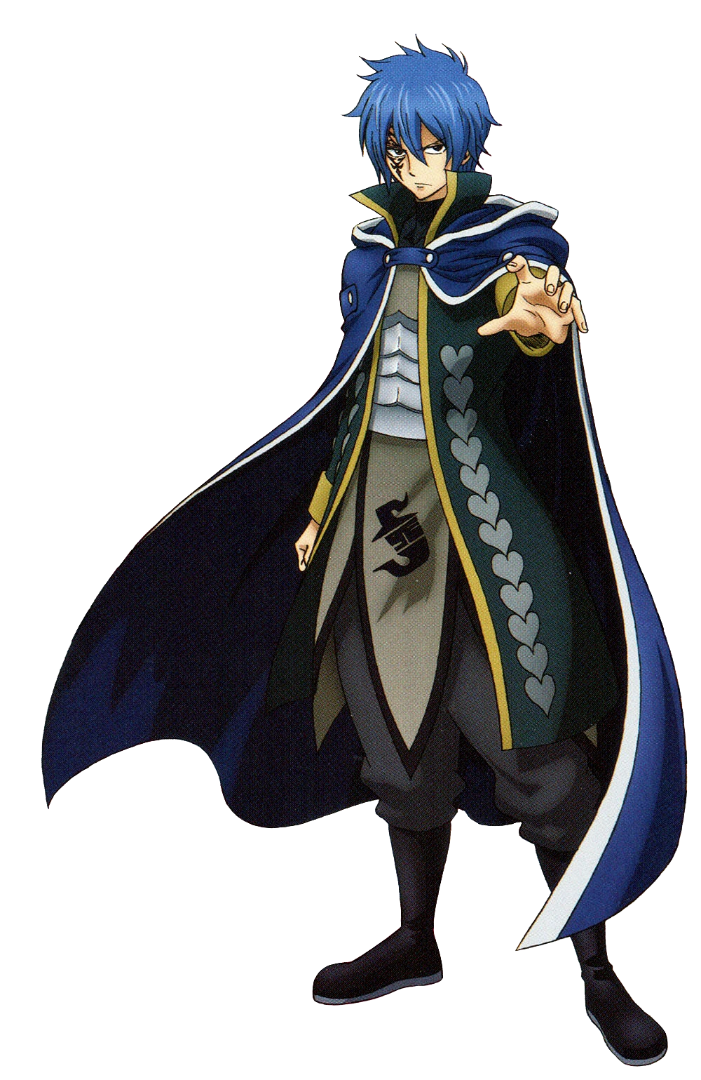 Sam Jellal jest widziany w znacznie ciemniejszym ubraniu, z jego ubiorem składającym się z białej koszuli z niebieskim odcieniem pod kapturem ciemnoniebieskiego płaszcza z jasnoniebieskimi krawędziami, dwoma sznurkami z wisiorkami w kształcie tarczy zwisającymi z kaptura i widocznym złotym symbolem na lewej części klatki piersiowej, przypominający znak Fairy Tail, a do tego proste, luźne, ciemne spodnie wpuszczone w sznurowane buty.