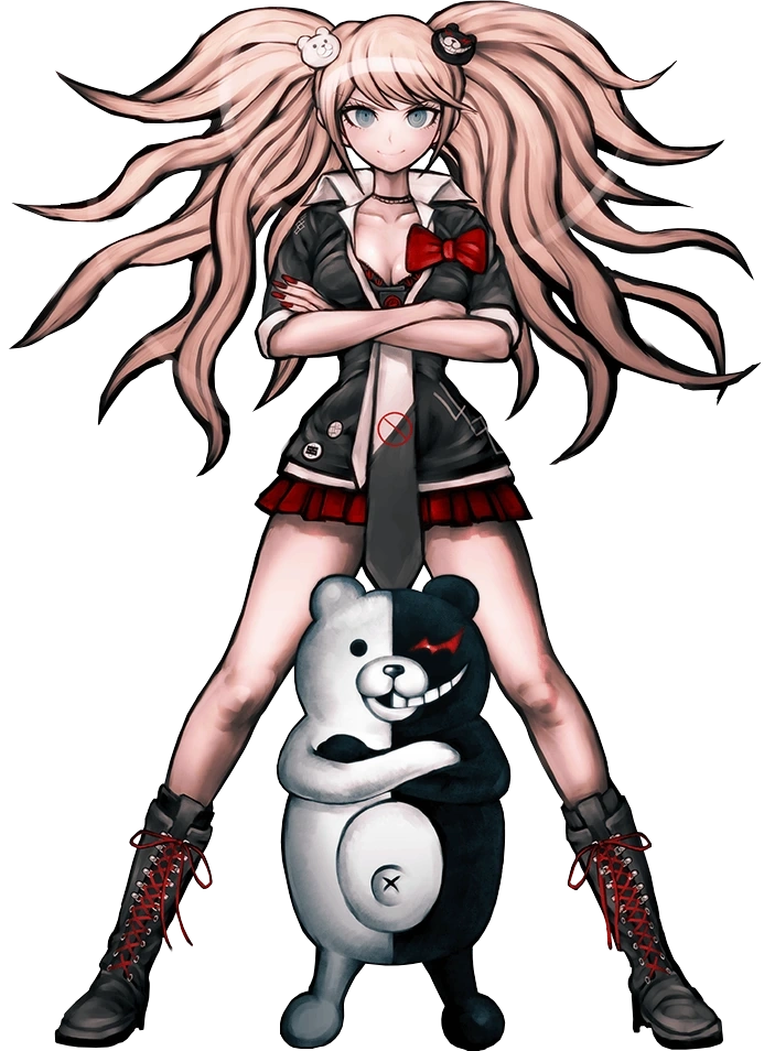 - Jest kanonicznym faktem, że Junko naprawdę troszczy się o swoich kolegów z klasy i swoją siostrę, ale nawet pomimo tego faktu jest postacią nie do odkupienia ze względu na to, że okazuje swoją miłość poprzez rozpacz.