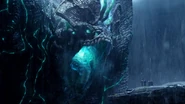 Podczas gdy Otachi udaje się do miasta w celu odnalezienia Newtona Geiszlera, Leatherback postanawia zbadać nieruchomego robota. Lekko uderzając kadłub Jaegera, potwór łamie ramię jednego z jego pilotów. Po chwili obaj piloci wychodzą z machiny i strzelają z pistoletu sygnałowego w oczy potwora. Rozwścieczony, Leatherback unosi swoje ramiona z zamiarem zabicia obu ludzi. Wtedy właśnie na miejsce dociera ostatni z Jaegerów, Gipsy Danger.