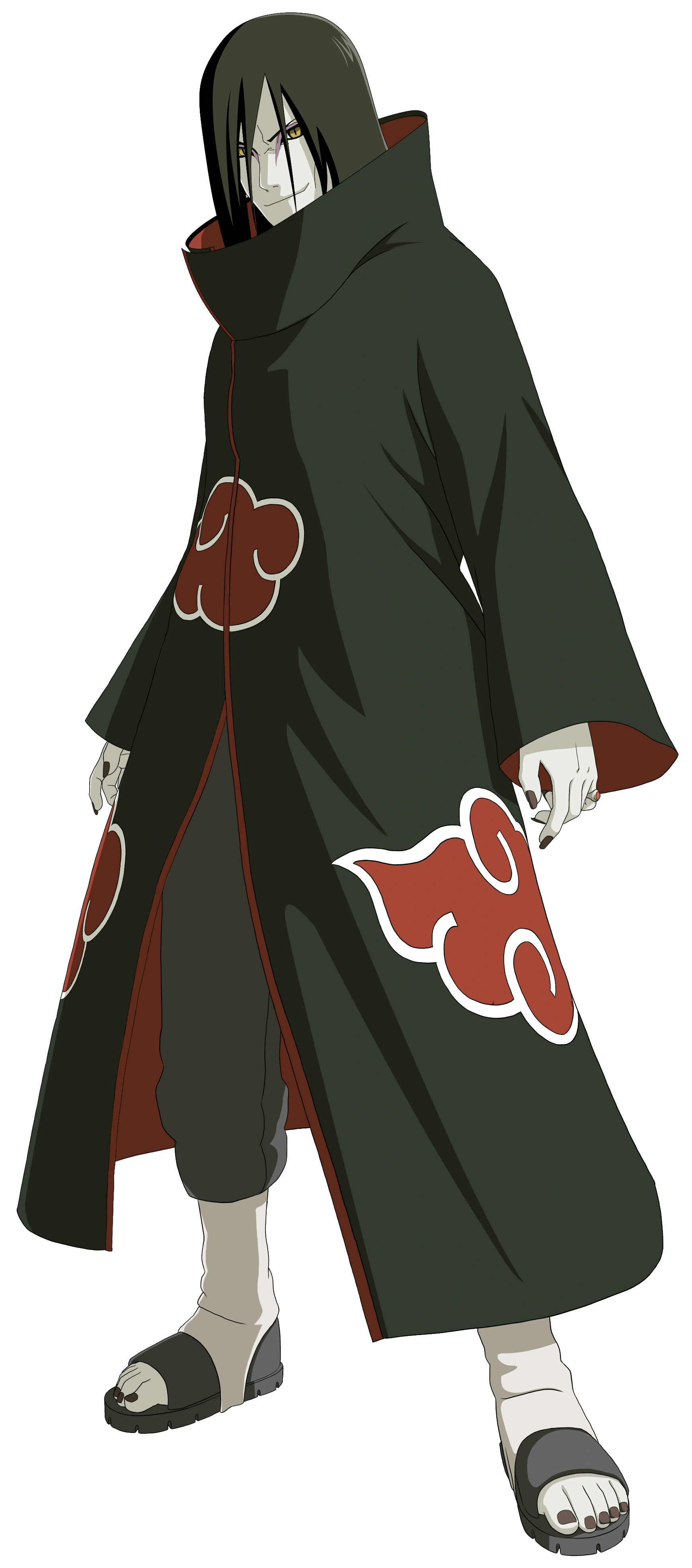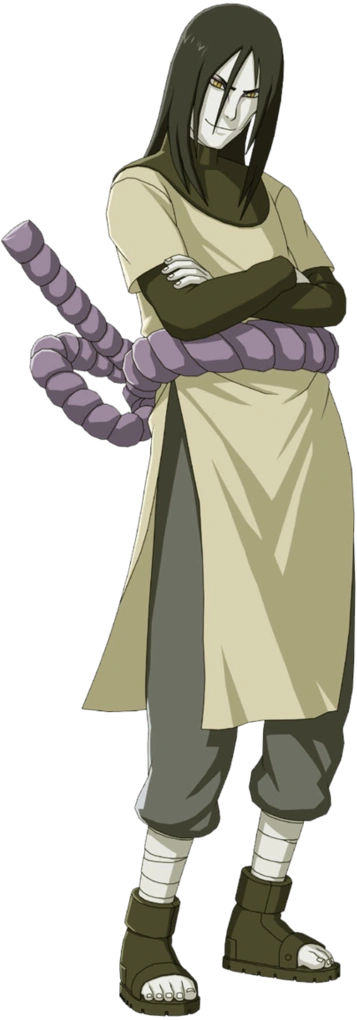Zaczynał jako główny antagonista w I części mangi i anime, a później był jednym z głównych antagonistów w części II - Naruto Shippuden. Jest jednym z trzech legendarnych Sanninów z Konohy, który trenował pod okiem Hiruzena Sarutobiego, wraz ze swoimi byłymi przyjaciółmi, Jiraiyą i Tsunade.