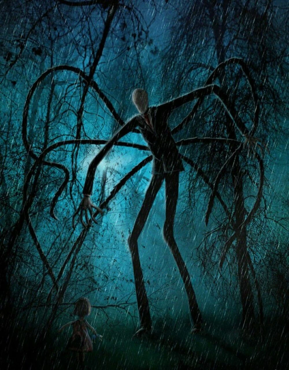- Wbrew powszechnej opinii, Slenderman nie wywodzi się z Creepypasty, a z forum Something Awful. Tam zadebiutował się w konkursie na obrazie autorstwa Victora Surge. Od tego czasu, Surge zaczął pisać krótkie historie związane z tą postacią, w których otrzymała ona imię Slenderman. Wielu ludzi zaczęło także tworzyć własne historie, blogi, gry wideo i filmy powiązane z tą postacią.