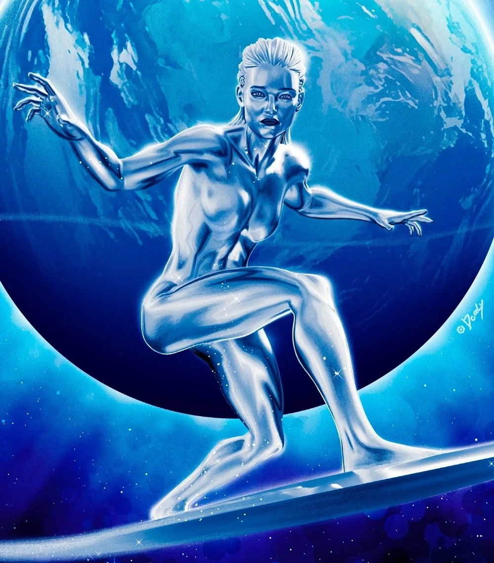 Srebrny Surfer pojawia się po raz pierwszy sama, gdy Reed Richards wykrywa dziwne sygnatury energii, wypowiadane różnymi słowami przez różne osoby/istoty w obcym języku. Sue, Reed, Ben i Johnny jedzą kolację, aż w końcu widzą dziwne meteory spadające z nieba w błysku światła. Natychmiast pędzą na Times Square za pomocą Fantastycznego-samochodu, a Johnny leci przed nimi. Ona dolatuje na Times Square, a jej twarz jest transmitowana w telewizji. Gdy Fantastyczna Czwórka prosi tłum, aby się odsunął, patrzy na nich i pyta, czy są „obrońcami” tego świata, na co odpowiadają twierdząco. Wyjaśnia, że ich planeta jest skazana na śmierć i że nic nie mogą z tym zrobić.