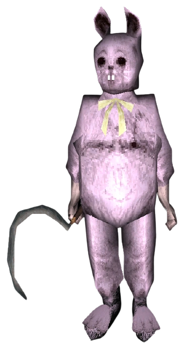 Wcielając się w rolę Rozpruwacza Wielkanocnego, nosi ogromny kostium Zajączka Wielkanocnego z brudnym fioletowym futrem i żółtawą muszką oraz dzierży duży sierp.