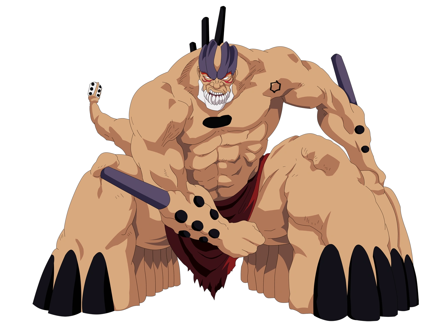 Jak każdy Arrancar, ma dużą dziurę, oznaczającą jego dawny czas jako Pusty, która znajduje się pośrodku jego piersi. Z maski Pustego pozostaje szczęka (z 8 zębami), która spoczywa na jego brodzie. Na lewym ramieniu znajduje się tatuaż z numerem 10, oznaczający stopień Yammy'ego. W formie resurrection 1 topnieje, pozostawiając tylko 0.